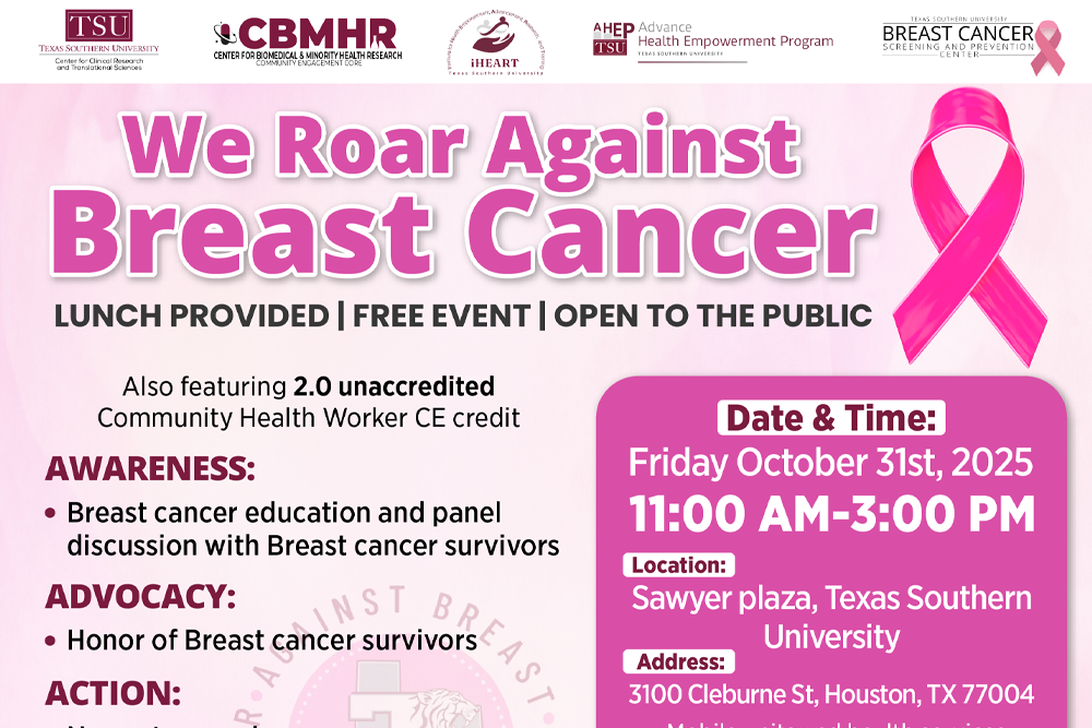 In-person registration for 10/31/25 TSU We Roar Against Breast Cancer